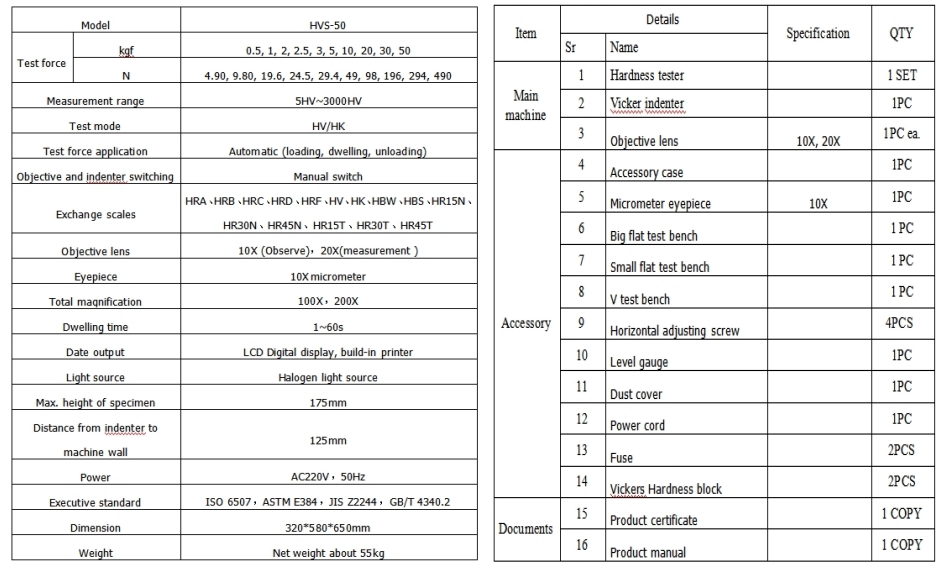 The digital Vickers (micro) hardness tester HVS - 5/10/30/50 from Laizhou Jincheng Industrial Equipment Co., Ltd. is designed for precise digital hardness testing. Its unique mechanical, optical, and light source designs significantly enhance indentation image clarity, bringing measurement accuracy to a new level. A closed-loop load control system ensures test repeatability and stable indications. The LCD screen allows for seamless switching between hardness scales, making operation easy. Equipped with a 10x digital measuring microscope and a 40x objective lens, it expands the measurement range. This product complies with international standards such as ASTM and ISO, ensuring guaranteed quality. Laizhou Jincheng also provides premium pre-sales consulting, after-sales service, technical support, and repair services, ensuring peace of mind.